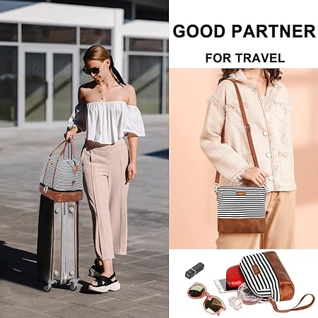 • Size of Weekender Bag for Women: 21″L×13″H×9.5″W, Messenger Bag: 10″L×9″W, Storage Bag: 7″L×4.5″W, 2 Adjustable straps up to: 49″-54″. The weekender duffle bag can hold necessities for 2-4 days, a largest 21.5″ laptop, clothes, pants, footwear, cosmetics, toiletries, electronic equipment, etc.