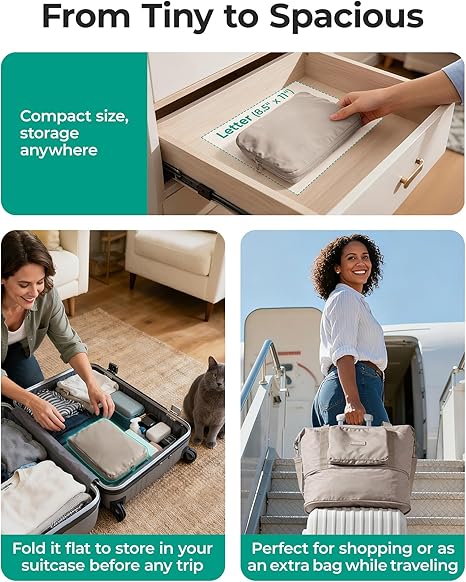• 🔄 From Compact to Spacious: This duffle bag transforms from a slim 7×10 inch pouch into a roomy carry-on in seconds. Folding neatly for storage in your suitcase or backpack, and unfolds to offer ample space for all your belongings. A perfect extra bag for spontaneous shopping and souvenir haulsas. Dimensions:17.7×7.8×13 inches, Capacity: 24L to 37L